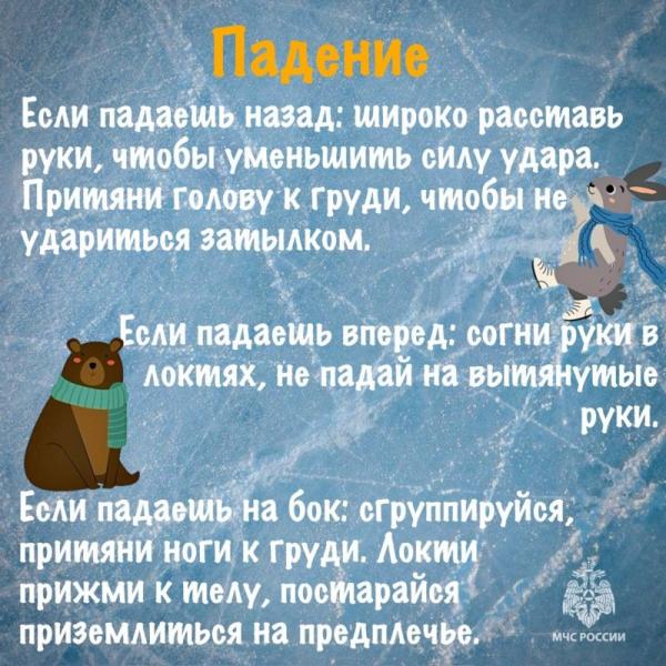 ! Помни: особенно опасны падения на спину, так как можно удариться затылком и получить сотрясение мозга.